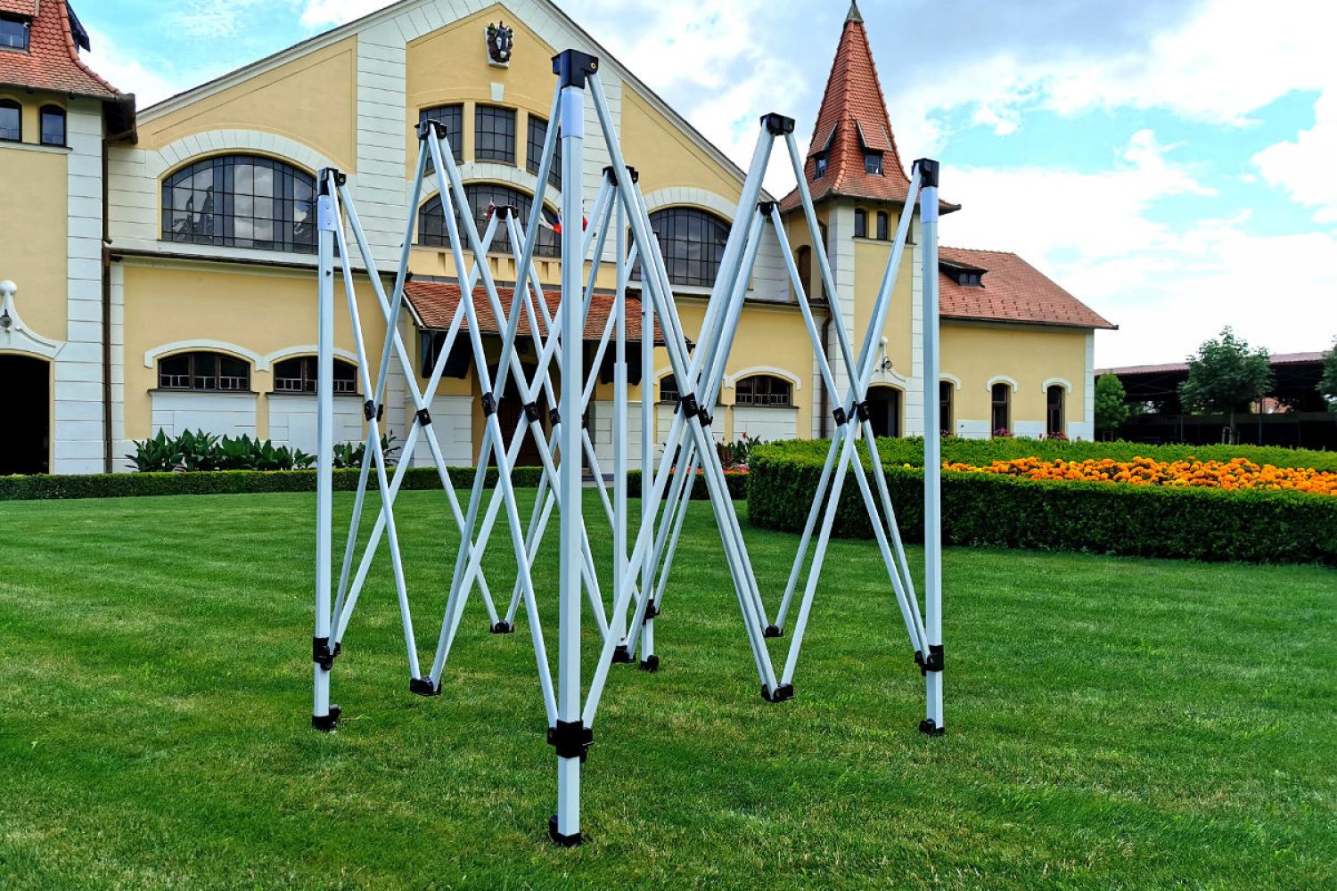 Samotné skladanie a rozloženie stanu je expresné. Bez náradia a komplikovaných návodov pavilón postavíte za pár sekúnd. Vďaka praktickej kovovej nožnicovej konštrukcii ho jedna osoba ľahko postaví behom chvíľky na miesto, na ktoré potrebuje. Nebudete sa s ním musieť nijako trápiť. Stánky vás podporia vo vašej činnosti, a pomôžu Vám s prezentáciou tovaru.