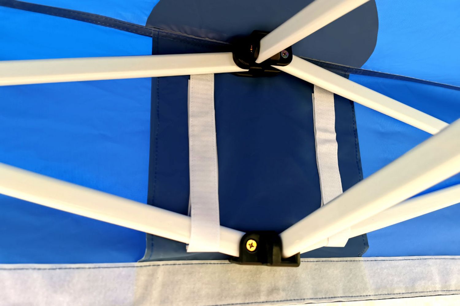 Husto tkané polyesterové vlákno je srdcom plachtoviny. Vnútorná PVC vrstva strechy vytvára dokonalý tieň. Každý spoj je podlepený stan je 100% nepremokavý. Promo stan je ideálne používať aj ako sklad na jarmokoch, ka sa Vám všetok tovar nezmestí do prezentačnej časti, môžete ho bezpečne uložiť vo vedľajšom stane.
